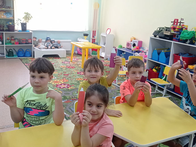 Сегодня 2 сентября. Вспомнили с ребятами школьные принадлежности. И сделали с ними из бумаги один из них - карандаш.