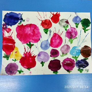 Сегодня с детьми говорили про жаркие страны: про природы, растения, животных. Рассматривали картинки. И решили нарисовать необычные цветы, которые могут там расти. Раздували кляксы через трубочку, превращая их в необычные растения. Получилось очень красиво!