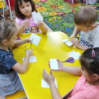 Сегодня ребята ждали в гости куклу Машу. Приготовили ей угощение. А она пришла с подругой. Угощение было только на одного. Ребята предложили поделить пополам. Что я и сделала. Потом мы сели за столы и пробовали делить лист бумаги пополам на глаз. Почти у всех получилось это сделать. Проверяли методом наложения.